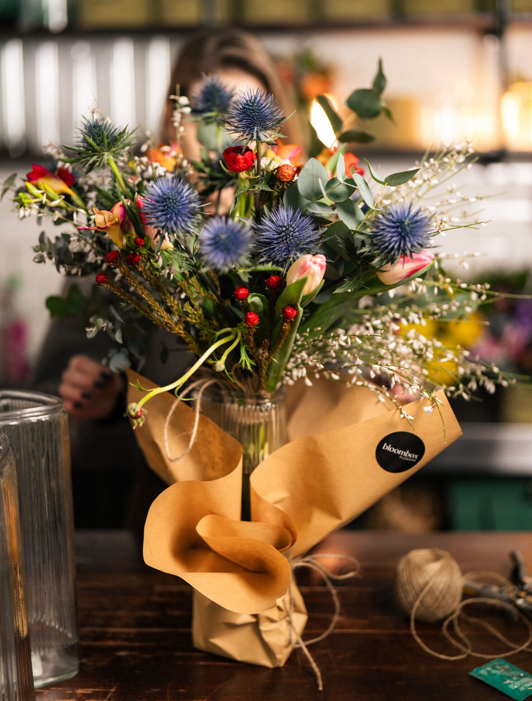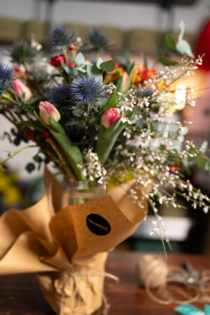 • buchet floral sezonier, în stil Bloombox (natural, modern, plin de volum)